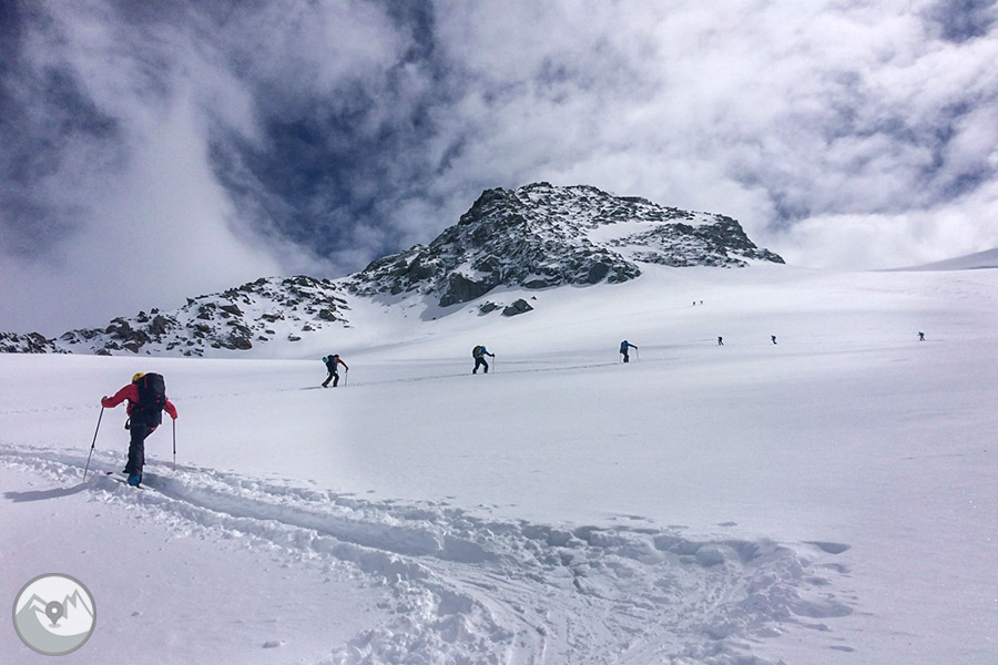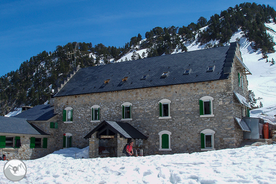 Planteamos realizar la ascensión al Aneto en dos jornadas: el primer día haremos la aproximación desde el Hospital de Benasque hasta el refugio de la Renclusa donde pasaremos la noche. El refugio se encuentra situado en un paraje excepcional justo en medio de la cara norte del macizo, a los pies de la Maladeta. El segundo día nos levantaremos temprano y subiremos hacia los Portillones y el glaciar del Aneto, continuaremos hasta el conocido Paso de Mahoma y finalmente alcanzaremos la cima del Aneto. El largo descenso lo haremos desde la cima directamente hacia el Plan de Aigualluts, la Besurta y el Hospital de Benasque sin pasar por el refugio. Esta ascensión es ideal para personas con experiencia en ascensiones de esquí de montaña con considerables desniveles y que tengan una buena preparación física.