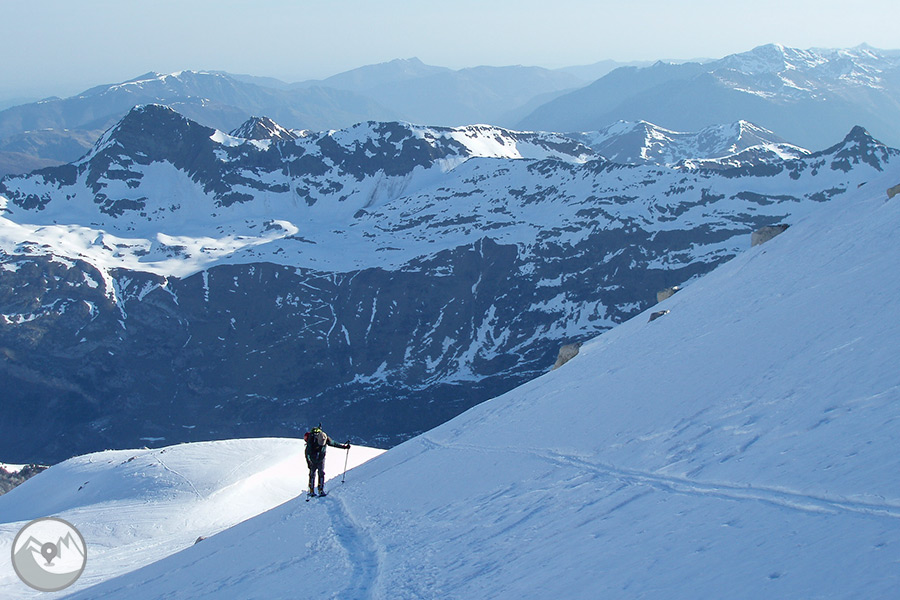 La ascensión con esquís de montaña -skimo- de 2 días en el Aneto es una de las actividades de esquí más deseadas y clásicas del Pirineo. Entre los diferentes atractivos de la propuesta destaca coronar la cima más alta de la cordillera, con sus 3.404m de altitud, pero sobre todo realizar el apasionante, divertido y largo descenso -casi 1.400m de desnivel- una vez coronada la cumbre y que nos lleva hasta el Plan de Aigualluts, sin duda, uno de los mejores descensos en esquís de todo el Pirineo. Y es que durante los meses más fríos del año -invierno y primavera- cuando todo el macizo de la Maladeta-Aneto queda cubierto por la nieve, la disciplina más recomendable para abordar y disfrutar de las diferentes ascensiones que podemos realizar en la zona es el esquí. La propuesta tiene un importante carácter alpino -estaremos rodeados por cimas nevadas y escarpadas de más de 3.000m- y nos descubre la bonita cabecera del Valle de Benasque en el Parque Natural Posets-Maladeta. ¡Es una ruta que recordaremos toda la vida y totalmente imprescindible para cualquier amante del esquí de montaña!