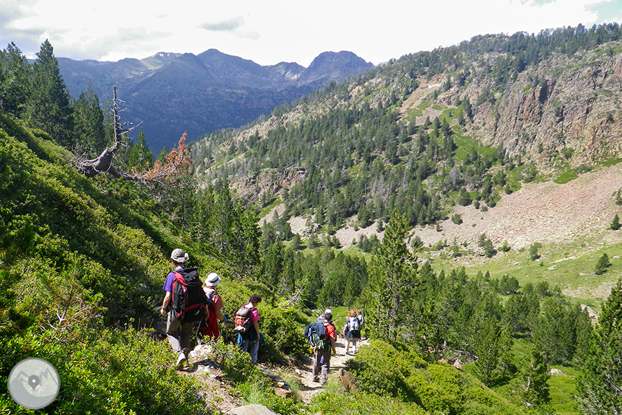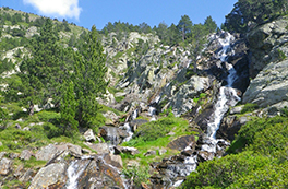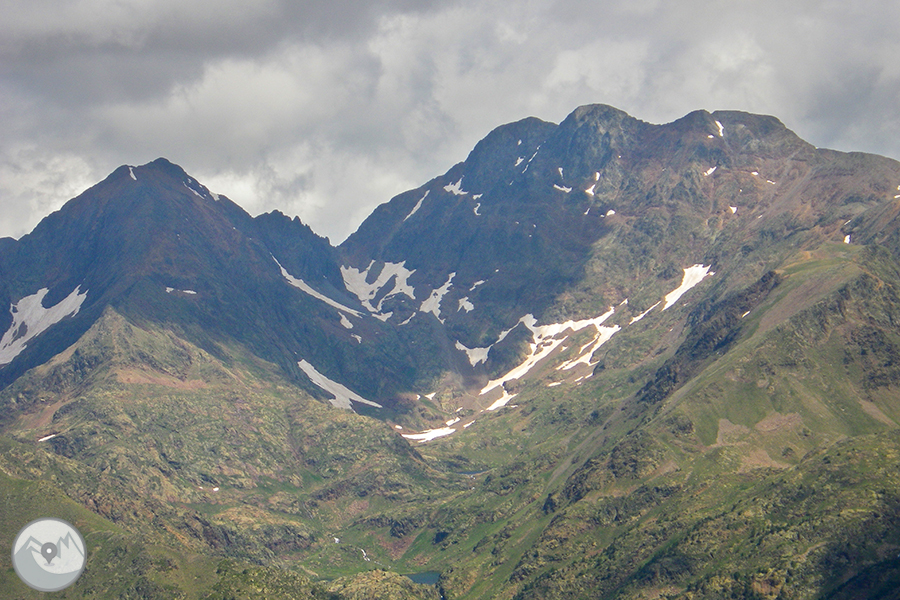 El itinerario que realizamos nos lleva hasta la cima del Monteixo (2.905m) desde el aparcamiento de Aixeus. Empezamos la excursión remontando el barranco de Aixeus -donde encontramos varios saltos de agua de gran belleza- hasta la base del circo glaciar, donde ya vemos y disfrutamos del precioso lago de Aixeus, que en días de sol presenta una variedad cromática embriagadora. El tramo final de la subida es el más exigente y pedregoso pero merece el esfuerzo porqué una vez llegados a la cima, ésta nos regala unas vistas panorámicas inmejorables de la Pica d'Estats, el techo de Cataluña, y de gran parte del Alto Pirineo y el Prepirineo. Hacemos la agradable bajada por un itinerario parcialmente diferente al que hemos seguido de subida.