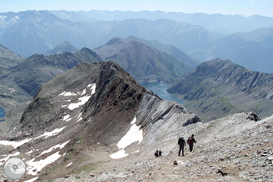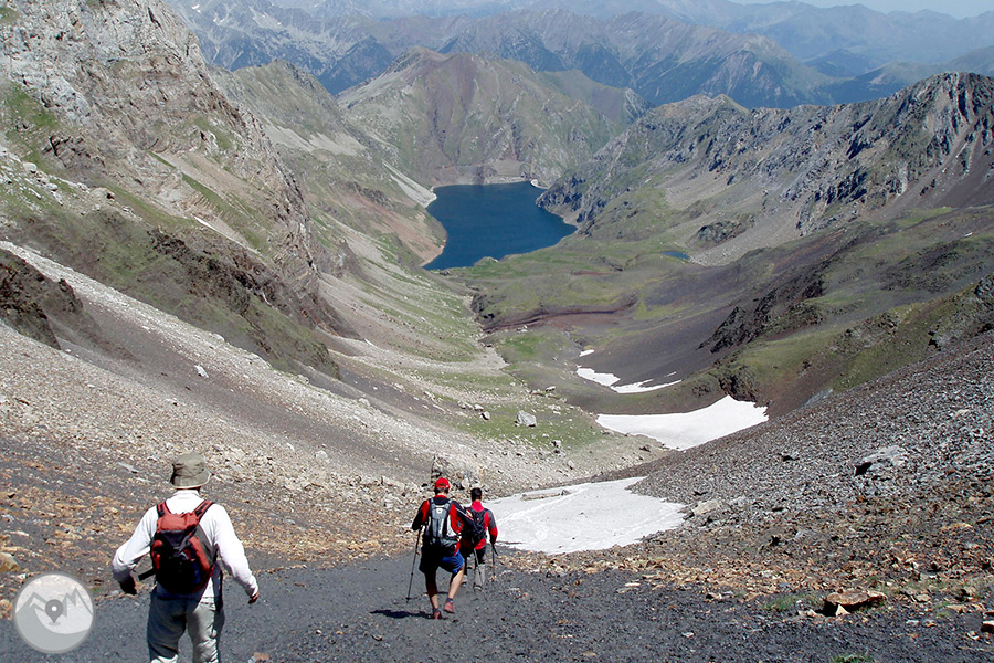 Comenzaremos el recorrido -casi circular- en el aparcamiento del embalse de Llauset. Bordearemos la orilla norte del lago de Llauset y nos desviaremos hacia el lago de Botornás. Desde este punto seguiremos hacia el oeste pasando por las pequeñas lagunas de Coma Arnau y situándonos en la arista este de la Tuca de Vallibierna (3.067m), que alcanzaremos. El estrecho y vertiginoso Paso del Caballo nos acercará hasta la cima de Culebras (3.062m), desde donde bajaremos al collado de Llauset (2.835m). Desde este punto descenderemos todo el valle de Llauset hasta el punto de inicio.