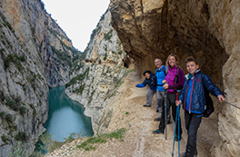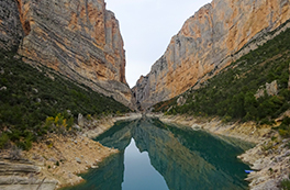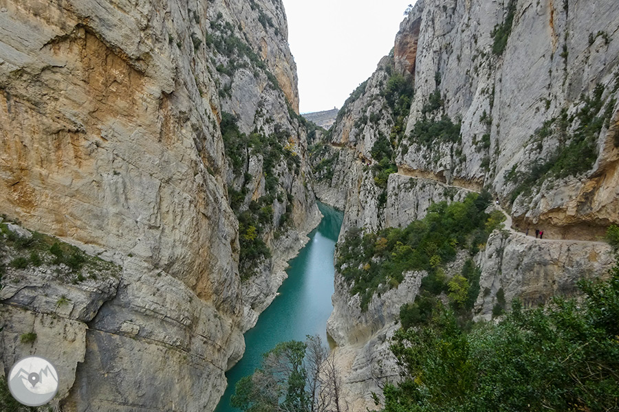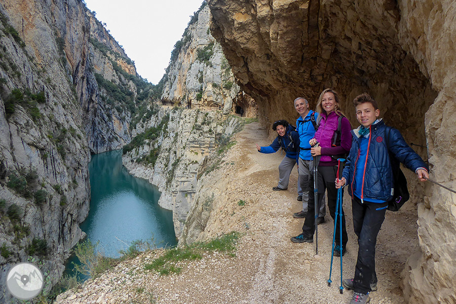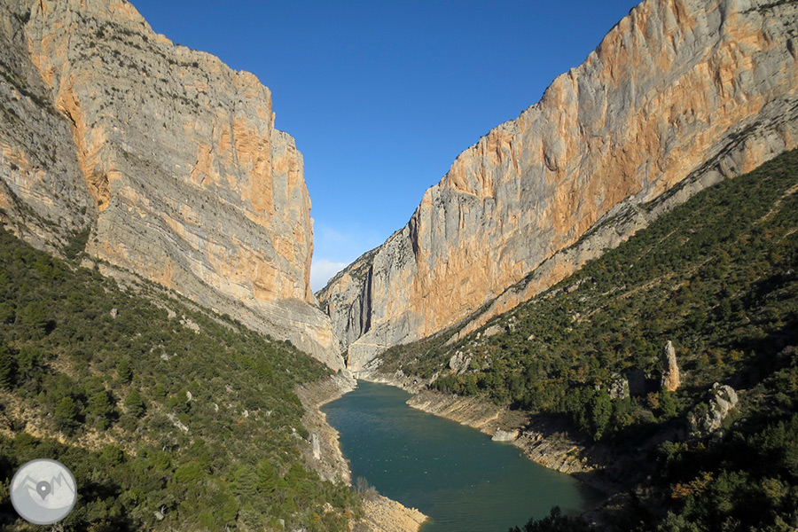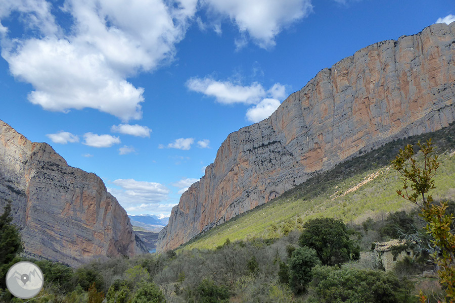 El itinerario que os proponemos tiene como punto de inicio la ermita de la Mare de Déu de la Pertusa. Desde este punto, en la vertiente sur del Montsec, caminaremos en dirección al desfiladero. Pasaremos por el Mas Carlets, dejaremos atrás el desfiladero del Seguer, cruzaremos el desfiladero de Mont-rebei por un camino excavado en la roca, visitaremos la cueva Colomera y llegaremos finalmente al puente colgante de Sant Jaume. La vuelta la haremos deshaciendo el mismo camino, lo que nos dará una nueva perspectiva del desfiladero y del magnífico entorno.