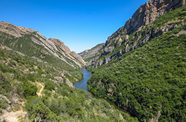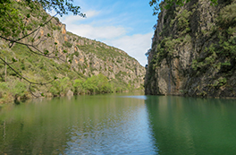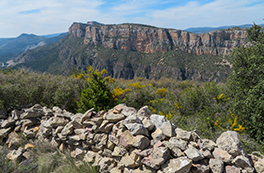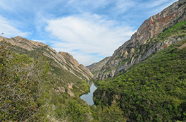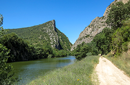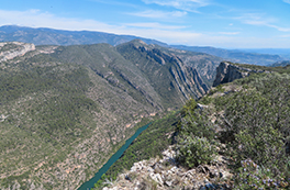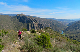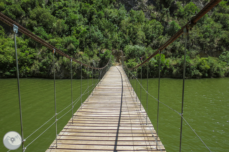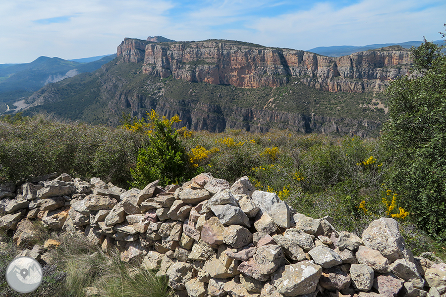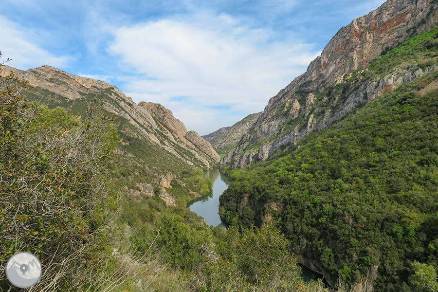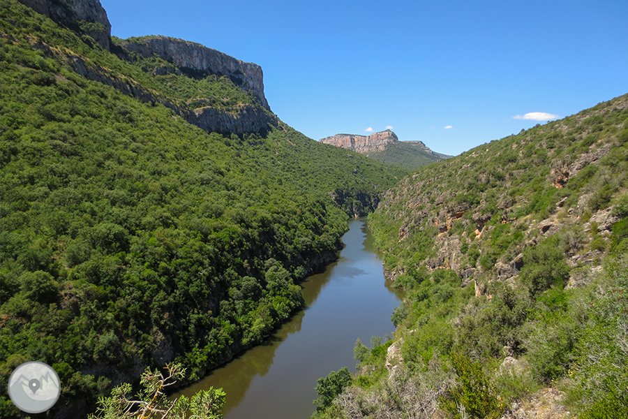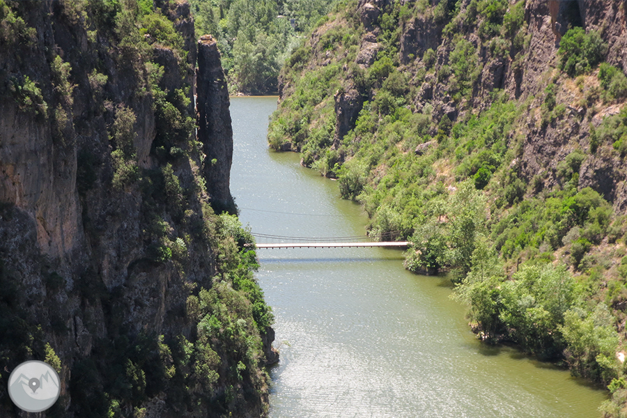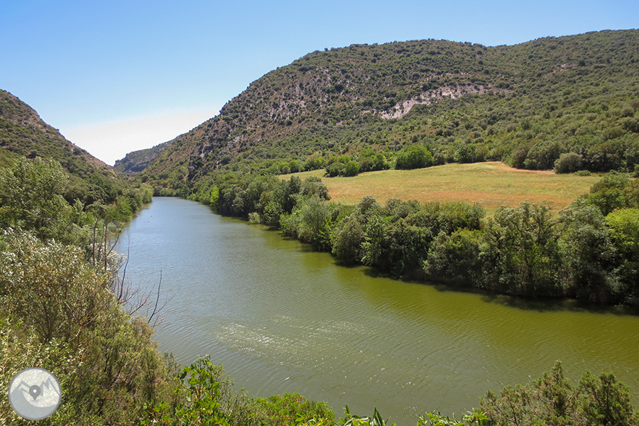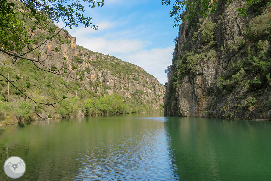 El itinerario que proponemos tiene como punto de inicio la pequeña población de Alòs de Balaguer. Desde este punto caminaremos en dirección O por la orilla S del río Segre. Subiremos hasta el risco de la sierra Carbonera, que nos ofrecerá vistas espectaculares y que reseguiremos hasta una zona con restos de búnkeres y trincheras. A continuación haremos un entretenido descenso hasta el río Segre, que cruzaremos por un puente colgante. Haremos la vuelta por el camino del interior del desfiladero, pasando por los estrechos de Mu y la zona de recreo de la Espadella.