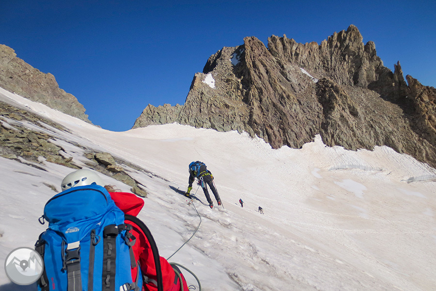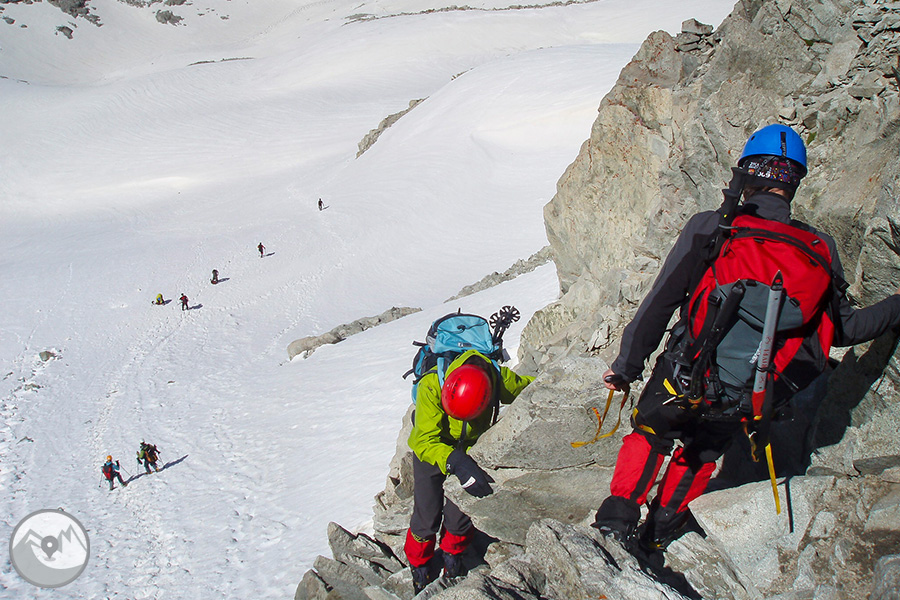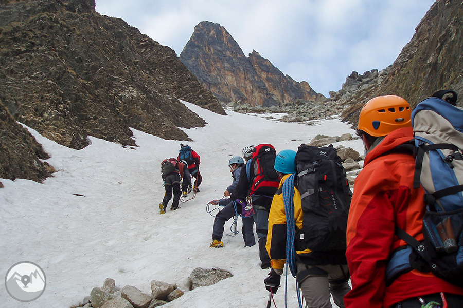 El curso es una propuesta ideal para personas con experiencia en montaña invernal y en el uso de piolet y crampones, pero sin experiencia ni autonomía en el uso de cuerda y anclajes en la nieve y/o roca. El objetivo principal del curso es perfeccionar las técnicas de iniciación al alpinismo y adquirir los conocimientos para poder abordar de forma autónoma corredores de nieve, pendientes de nieve pronunciadas y resaltadas con hielo o terreno mixto.