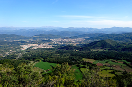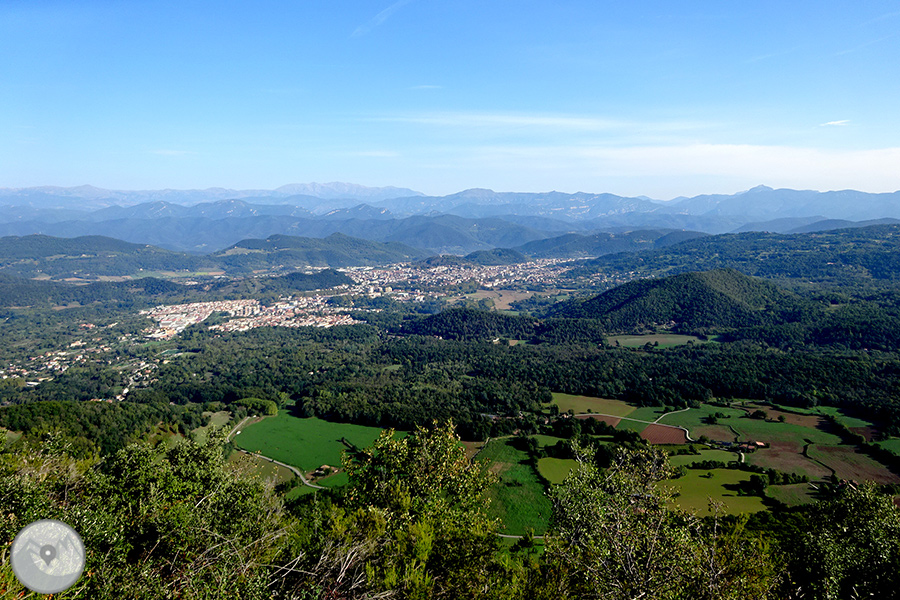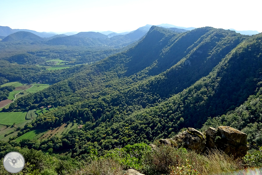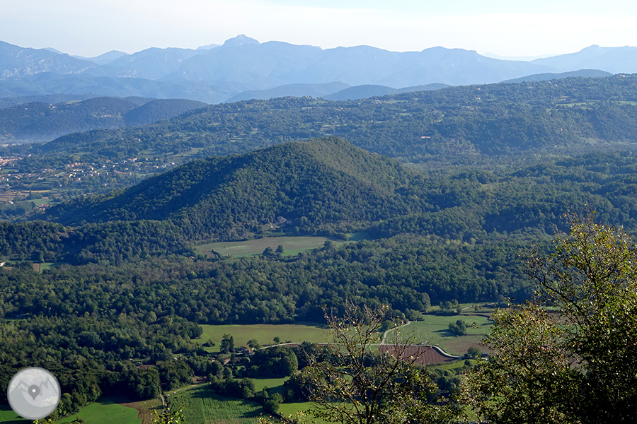 El itinerario que proponemos tiene como punto de inicio la ermita de Sant Pere de les Preses. Desde aquí ascenderemos por la ladera oeste de la sierra del Corb hasta el Mirador de los Volcanes, en el Puig Redon, uno de los lugares con mejores vistas del PN de la Zona Volcánica de la Garrotxa. Desde esta cima podremos observar 13 volcanes del total de 40 que hay en el parque. Entre ellos, los más importantes: el Santa Margarida y el Croscat. También podremos ver el recorrido de la colada de lava de la última erupción del volcán Croscat, cubierta, en gran parte, por la famosa Fageda d'en Jordà. Finalmente bajaremos hacia el cono volcánico del volcán del Racó y regresaremos a Les Preses por el interior de un singular robledal.