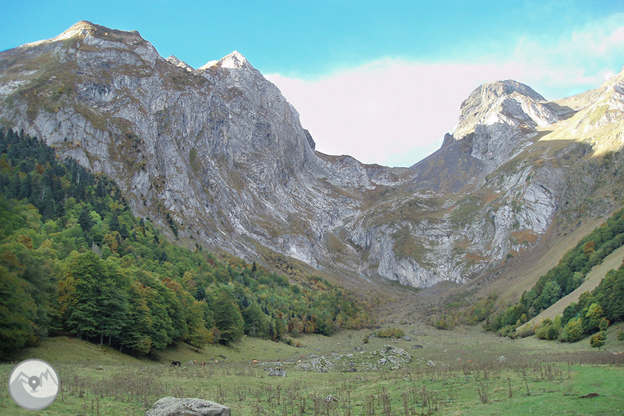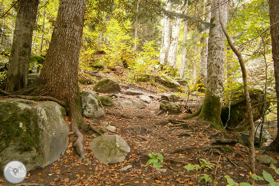 Itinerario precioso en el que caminamos entre frondosos bosques y pasamos por la espectacular surgencia natural conocida como los Uelhs deth Joèu, que esconde una historia muy curiosa. También disfrutamos de uno de los parajes más bellos del Valle de Arán y de todo el Pirineo, la Artiga de Lin, donde contemplamos las escarpadas montañas que definen el lugar.