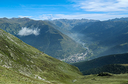 Día más panorámico de todos en el que ascendemos una cima clásica sobre Vielha. la capital del Arán. La ruta comienza en la Bassa d'Oles y sube decidida siguiendo un bonito sendero hasta el pico Montcorbison y hasta el cercano Tuc de Letassi. Hacemos la vuelta circular, pasando por la cabaña y los Clots de Gèles y la Pleta des Anhèths, desde donde llegamos al punto de salida.