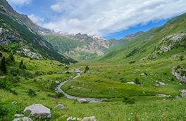 Ruta que comienza en el bucólico paraje de San Nicolás de Bujaruelo, con su hermoso puente medieval, remonta durante un tramo el río y posteriormente sube hacia poniente siguiendo el arroyo de Otal hasta el impresionante circo glacial de su cabecera. Rodeados de la caliza sierra Tendeñera, ¡disfrutamos de la riqueza de la flora y las marmotas que habitan este espectáculo de la naturaleza!