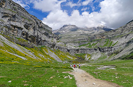 La ruta más clásica del Parque y la más impresionante. Un itinerario largo, pero fácil, que nos ocupa todo el día y que remonta el perfecto valle glacial de Ordesa -en marcada forma de U- hasta su cabecera. Reseguimos el río Aranza, que forma bellas cascadas en las Gradas de Soaso y, finalmente, llegamos a la fotogénica cascada de la Cola de Caballo, entre montañas que superan los 3.000 m de altura.