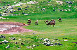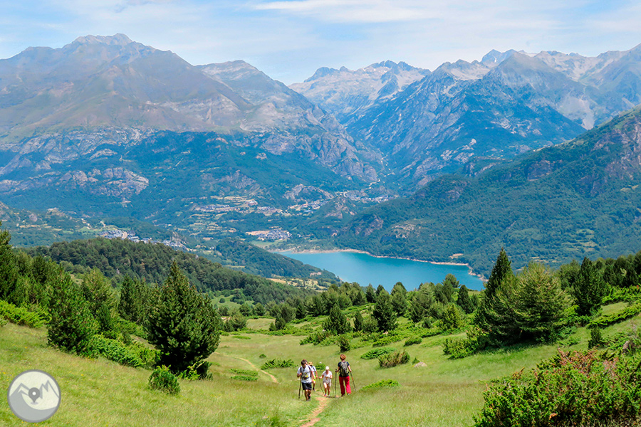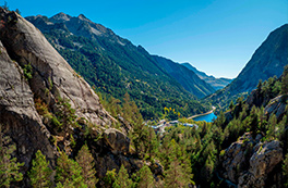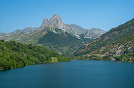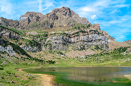 Visitamos un encantador valle abierto dominado por las murallas calcáreas de la sierra de la Partacua. Entre prados verdes, bosques de pino y torrentes que bajan llenos de agua, el camino asciende suavemente hasta el lago, que reposa al pie de las impresionantes paredes rocosas del Peña Telera.