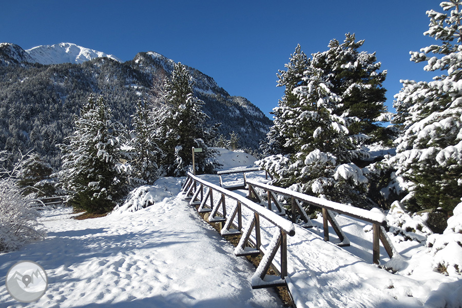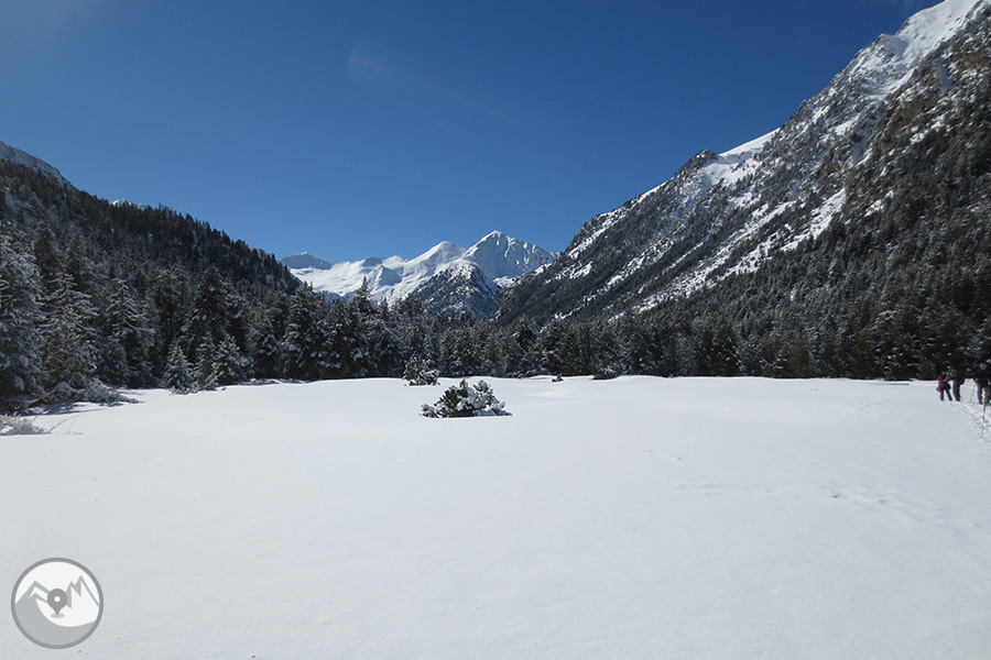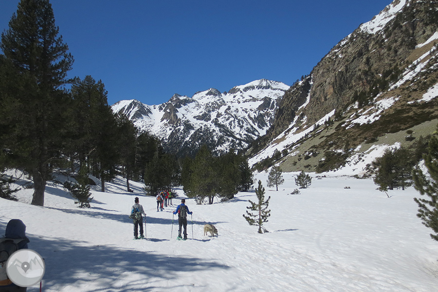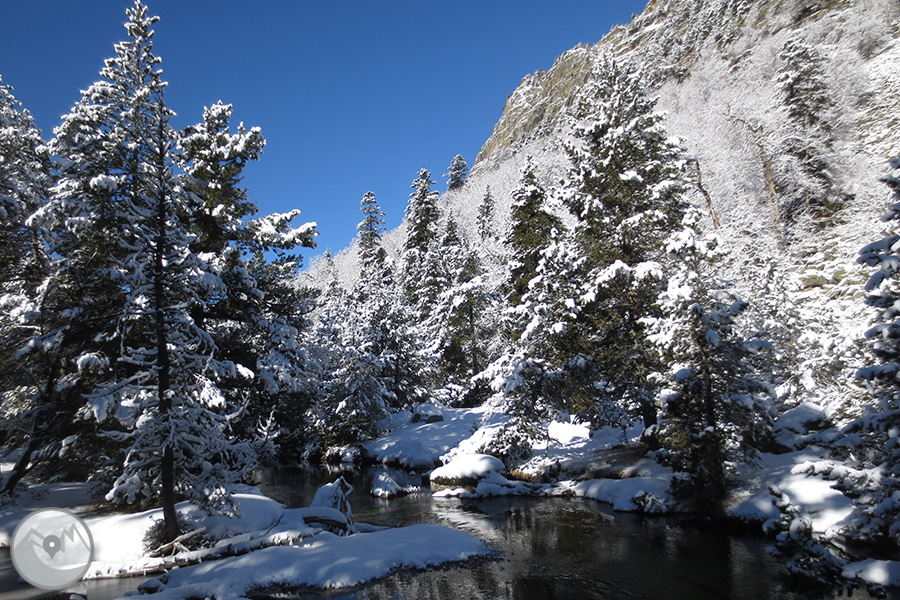 Desde Boí subiremos con el servicio de taxis 4x4 del Parque Nacional hasta la caseta de información del Parque en el Planell d'Aigüestortes. Primero visitaremos el mirador del Sant Esperit, que nos ofrece unas vistas maravillosas del valle de Sant Nicolau. Luego tomaremos el camino que sube hacia el Planell Gran y los Prats de Aiguadassi. Dejaremos atrás el refugio de la Centraleta y continuaremos hasta el refugio del Estany Llong. Finalmente ascenderemos hasta el mismo Estany Llong, que se nos presentará helado y cubierto de nieve. Antes de regresar al Planell d'Aigüestortes, pasearemos por el interior del bosque hasta el Pi de Peixerani. Realizaremos el regreso hasta Boí con el servicio de taxis 4x4 del Parque Nacional.