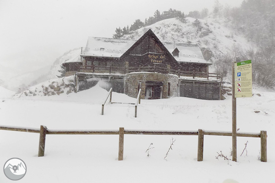 9:30h de la mañana en el aparcamiento del refugio del Fornet. Para llegar aquí, desde el pueblo de Alòs d'Isil tenemos que seguir unos 4 km en dirección a Bonabé.