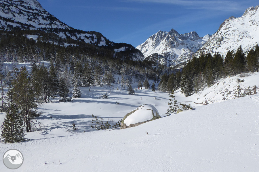 Iniciamos la ruta en el aparcamiento de Vado del Hospital y avanzamos por la Pleta de la Sarra hasta el Hospital de Benasque, hotel y base de la estación de esquí nórdico de Llanos del Hospital. Desde allí caminamos por el fondo del valle hasta los llanos e ibones de Plan de Están. Seguimos hasta la cabaña del Plan de Estan, la Besurta y finalmente llegamos al Forau, la cascada y la planície de Aigualluts. Desde este punto gozamos de unas excelentes vistas del glaciar y la cima del Aneto. Realizamos la vuelta, ahora en bajada, modificando un poco el itinerario para descubrir nuevos rincones que el valle nos esconde.