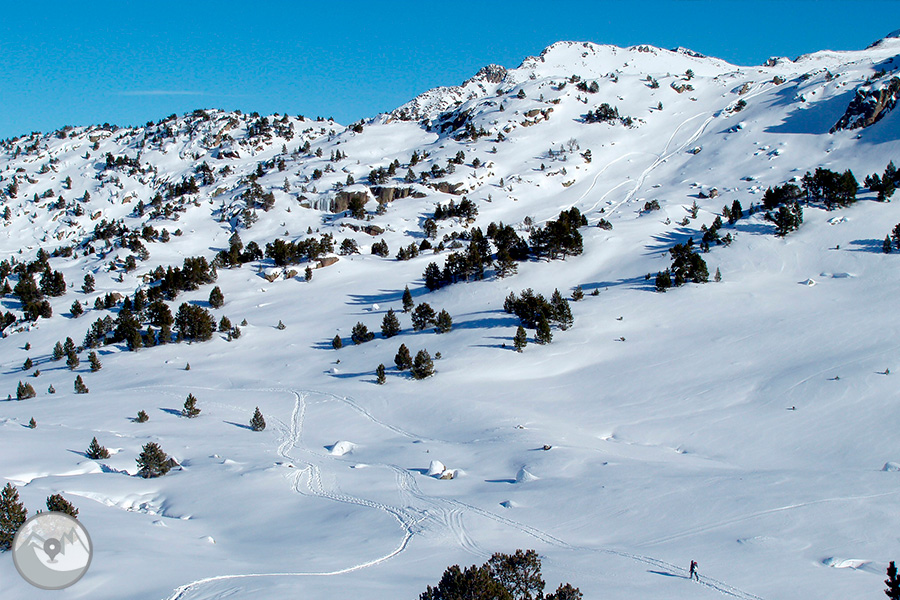 Comenzamos la ruta en el aparcamiento de la estación de esquí de Grau Roig. Desde este punto subiremos hasta el lago Primer, desde donde continuaremos remontando el valle, pasando por encima del lago Rodó, el lago del Meligar, el lago de las Fonts y el lago Cap dels Pessons, que rodearemos por el sur pasando bajo la imponente cara norte del pico de Pessons, momento en el que alcanzaremos la cota máxima del recorrido. Desde este punto iniciaremos la bajada siguiendo un rumbo NE, transitando por un valle secundario que nos dejará en el lago Primer, desde donde regresaremos al punto de inicio de la ruta.