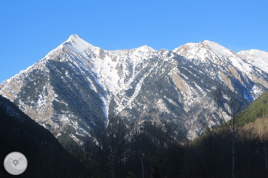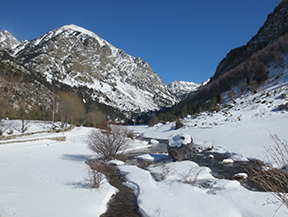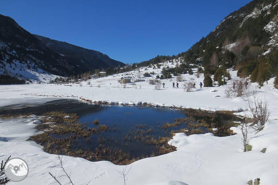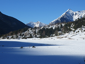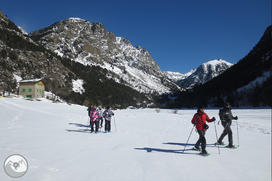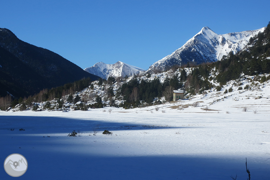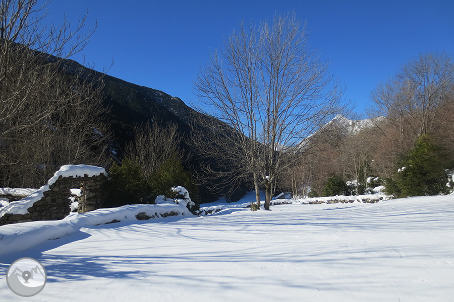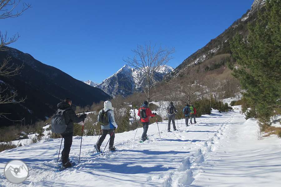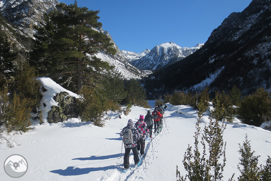 Desde el aparcamiento de la Farga iniciaremos el ascenso al valle de Sant Nicolau por el camino de los Enamorados. En la Palanca de la Molina tomaremos el camino que nos llevará hasta la ermita de Sant Nicolau, una de las joyas del románico en el valle de Boí y de allí subiremos hasta el lago de la Llebreta. Si la nieve lo permite y aún tenemos fuerzas, podremos acercarnos hasta la espectacular cascada del Sant Esperit, desde donde tendremos unas vistas maravillosas de todo el valle de Sant Nicolau. Realizaremos el descenso hasta el aparcamiento de la Farga variando un poco el recorrido realizado en la subida.