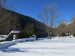 9:00h de la mañana en el aparcamiento de la Farga. Este aparcamiento está situado en la carretera que va de Barruera a Caldes de Boí en el desvío hacia Aigüestortes.