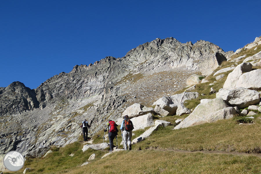 Desde el refugio Josep Maria Blanc subiremos hasta el collado de Monestero (2.716m), un paso de alta montaña que está situado entre dos de los picos más populares y destacados del Parque Nacional: el pico de Monestero (2.877m) y el pico de Peguera (2.980m). Si las fuerzas nos acompañan, abordaremos la ascensión del pico de Monestero, una fantástica atalaya desde donde podremos disfrutar de inmejorables vistas del Aran, los dos Pallars, la Ribagorza,... Desde el collado de Monestero descenderemos por el maravilloso valle de Monestero hasta el emblemático Estany de Sant Maurici, a los pies de la mágica montaña de los Encantats.