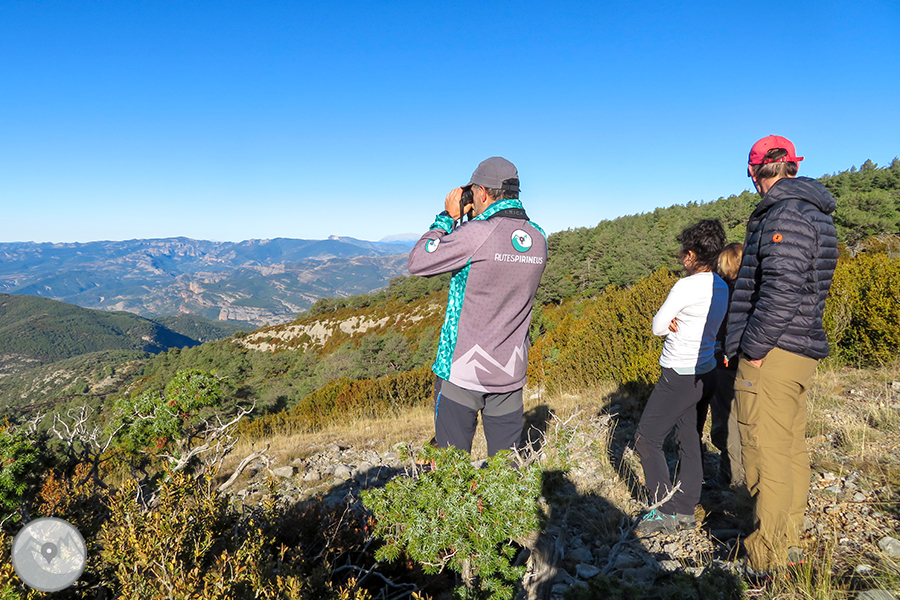 El segundo día caminaremos en dirección al Cap de Roques de Solduga, parando en espacios concretos para hacer observaciones de fauna y de rastros. Nos dirigiremos hacia Solduga y la Espluga de Cuberes -¡un paraje inhóspito con vistas!- donde encontraremos los restos de un asentamiento. Haremos un último tramo a pie y cuando lleguemos al bosque de la Pentina un taxi 4x4 nos recogerá y nos llevará de vuelta hasta Tremp, ¡donde acabaremos esta experiencia única e inolvidable!