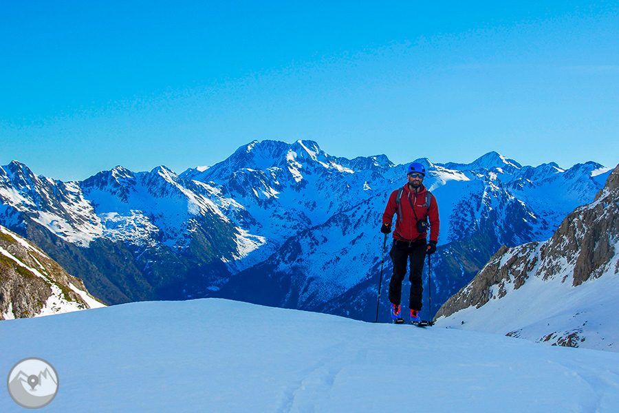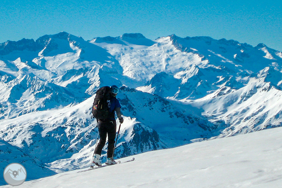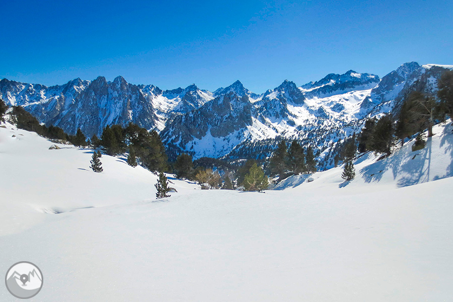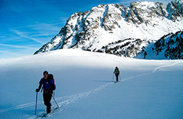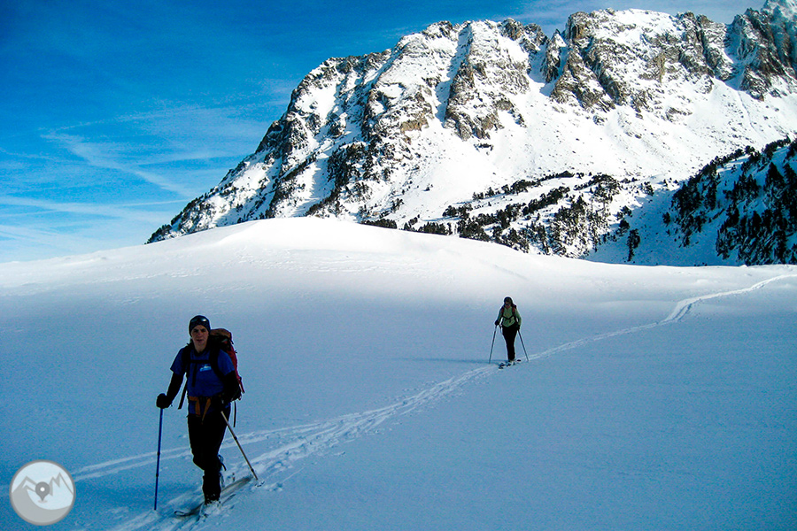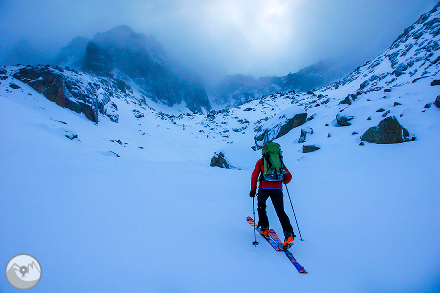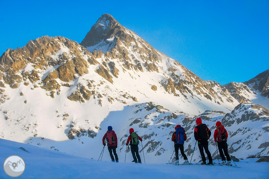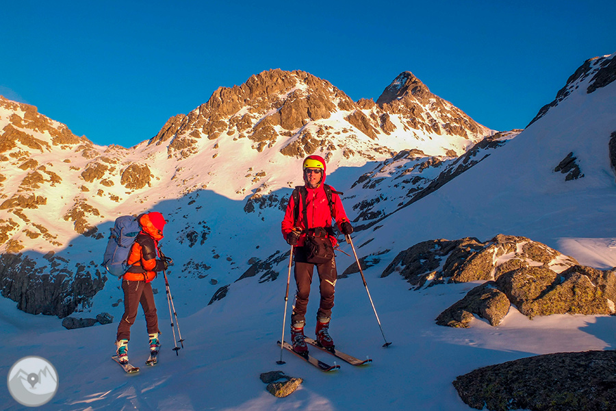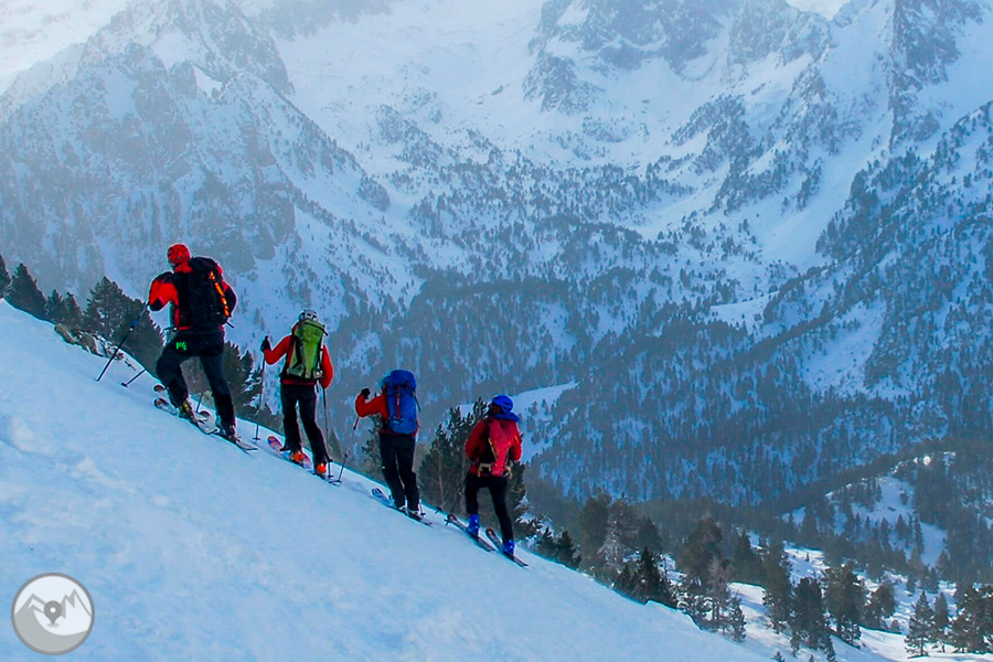 Durante cuatro días de alta intensidad física, con la Carros de Foc invernal travesaremos los diversos sectores del Parque Nacional de Aigüestortes y Estany de Sant Maurici ascendiendo collados siempre exigentes -Amitges, Sendrosa, Caldes, Contraix...- preludio de descensos técnicos y muy divertidos que pedirán toda nuestra atención y agilidad. Si las condiciones meteorológicas y de la nieve nos lo permiten, también tendremos la oportunidad de coronar cimas de gran belleza como el pico de Amitges (2.848m), el Tuc de Monges (2.698m), el Montardo (2.833m), el pico del Portarró (2.734m)...