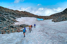 Realizaremos la travesía en formato de 5 etapas, completando un recorrido aproximado de 67 km con cerca de 5.500 m de desnivel positivo acumulado. Las jornadas presentan distancias de entre 12 y 18 km, con desniveles exigentes y progresión por terreno de alta montaña, incluyendo pasos pedregosos, collados elevados y ascensiones prolongadas. Se trata de una ruta físicamente exigente, pensada para personas con buena preparación y experiencia en alta montaña.