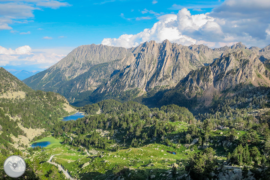 Concretamente esta ruta nos llevará por lugares tan bonitos y emblemáticos como la sensacional y singular Mata de Valencia -el bosque de avetos más extenso de los Pirineos-, el panorámico collado de Fogueruix, el lago de Sant Maurici con los inseparables picos de Els Encantats, los lagos de Ratera, las Agujas de Amitges o el valle del Gerber con sus lagos y modelado glaciar.