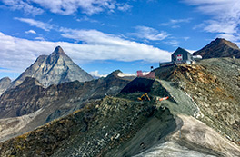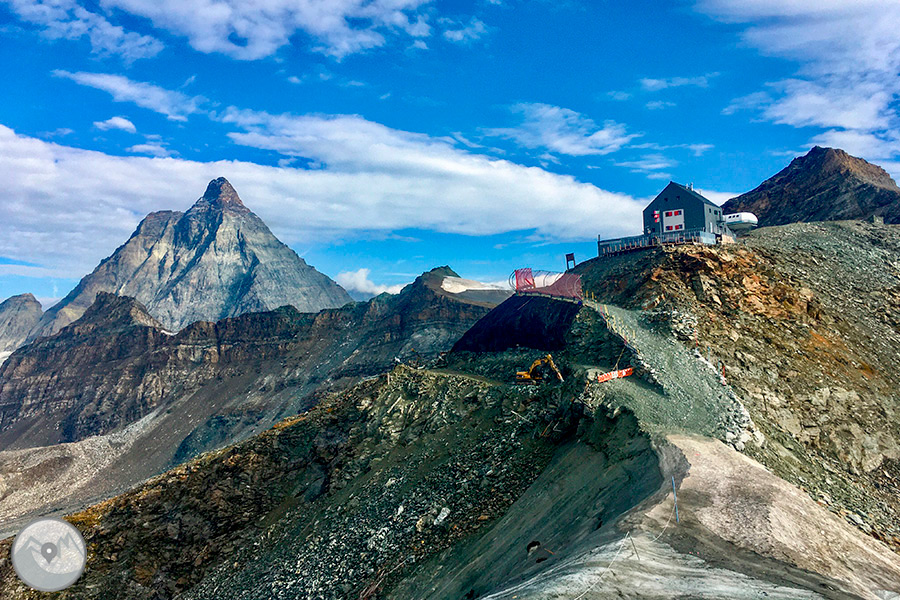 Etapa impresionante que nos llevará hasta la cota más alta de la ruta, ubicada a 3.317 m de altitud, donde pasaremos la noche. Empezamos la jornada por el interior de un bosque hasta que dejamos los árboles atrás y avanzamos entre prados alpinos y varios lagos glaciares como el Gran Lago y los lagos de Cimes Blanches. Durante buena parte del recorrido tenemos como telón de fondo una de las montañas más icónicas y bellas del planeta, el Cervino, conocido también como Matterhorn. El Rifugio Theodulo, final de etapa, está situado en un lugar increíble, un mirador fantástico del Monte Rosa y de los grandes glaciares que rodean estas majestuosas montañas de más de 4.000m de altitud.