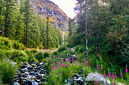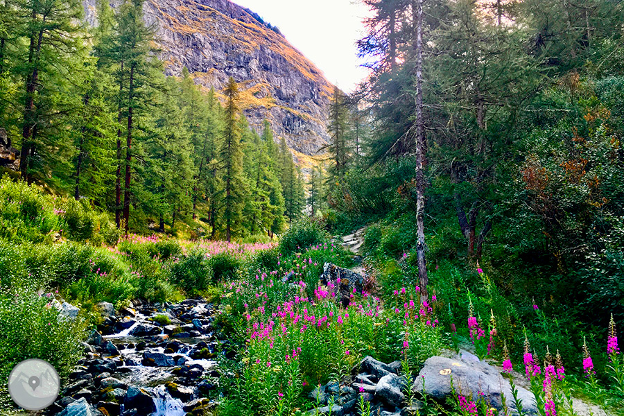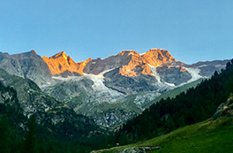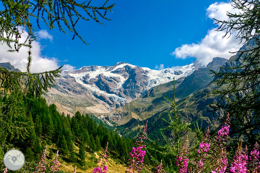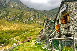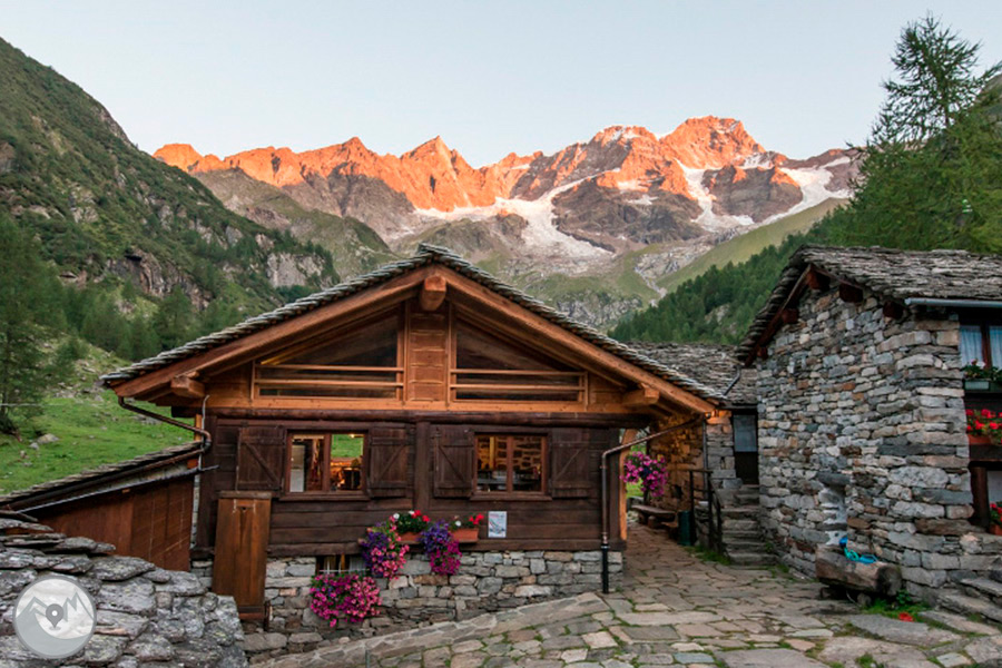 Etapa exigente que empecemos tomando el teleférico que desciende hasta el bucólico pueblo de Macugnaga. Aquí empezamos a andar siguiendo el río Anza y nos adentramos en el valle de Quarazza, donde nos reciben las aguas cristalinas del Lago de la Fate. Vamos ascendiendo este esplendoroso y profundo valle hasta el collado de Tudo, donde se pueden ver ejemplares de cabra salvaje. Desde este hermoso paso empedrado de alta montaña, iniciamos la fuerte bajada hasta el cautivador Rifugio Pastore, una construcción de piedra totalmente integrada en el entorno.