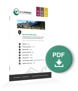 Las rutas pueden variar mucho en función de la época del año, de la nieve y de las condiciones meteorológicas. La señalización (marcas, paneles, balizas) que podemos encontrar a lo largo de la ruta también puede variar con el tiempo. RUTES PIRINEUS no se responsabiliza de cualquier mal uso de sus guías y recomienda que cada uno sea responsable y prudente en la montaña. Igualmente, os invitamos a documentaros con libros y guías especializadas para complementar la información descrita. Todos los tiempos son efectivos y toman un carácter orientativo, no se han tenido en cuenta las paradas por pequeñas que sean. Para cualquier sugerencia, RUTES PIRINEUS os invita a enviar un correo a info@rutespirineus.cat.